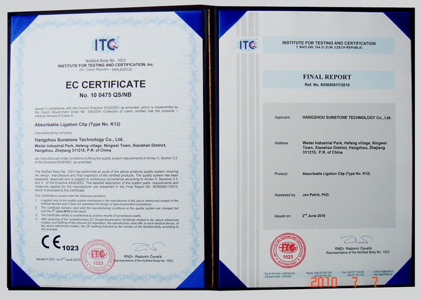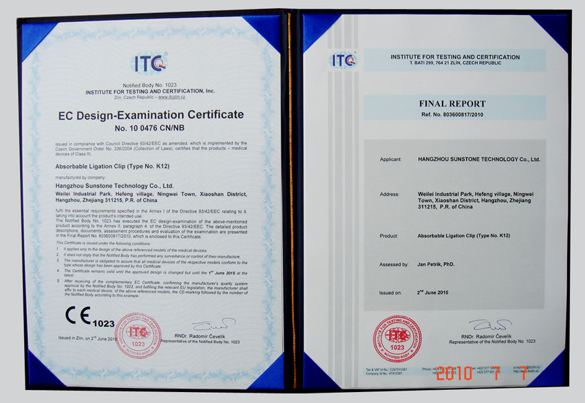 上述證書的獲得,標致著我公司產品將順利進入全球市場,參與國際競爭。同時也使我公司產品在日后國內醫療機構醫用耗材政府招標采購活動中獲益良多。